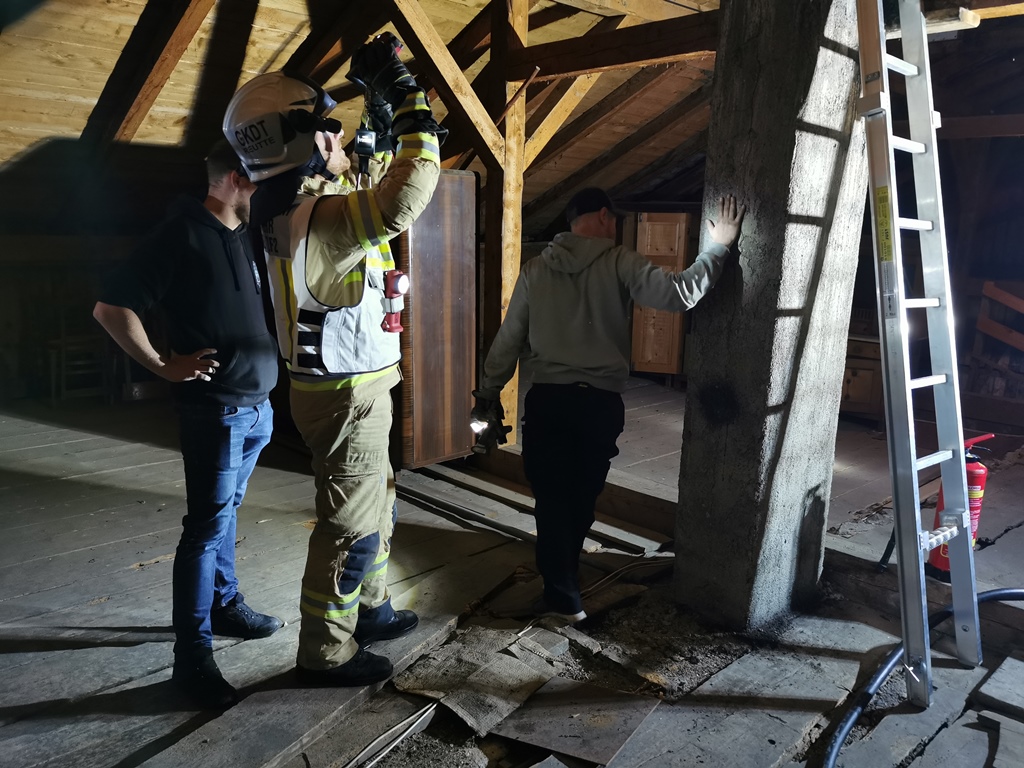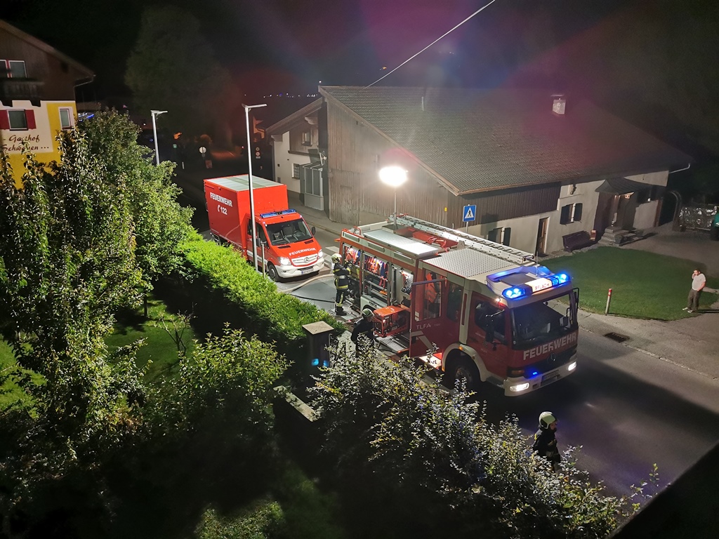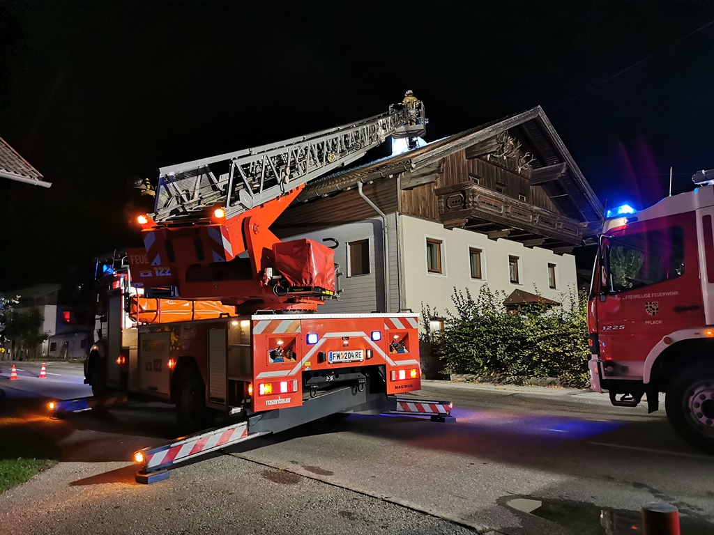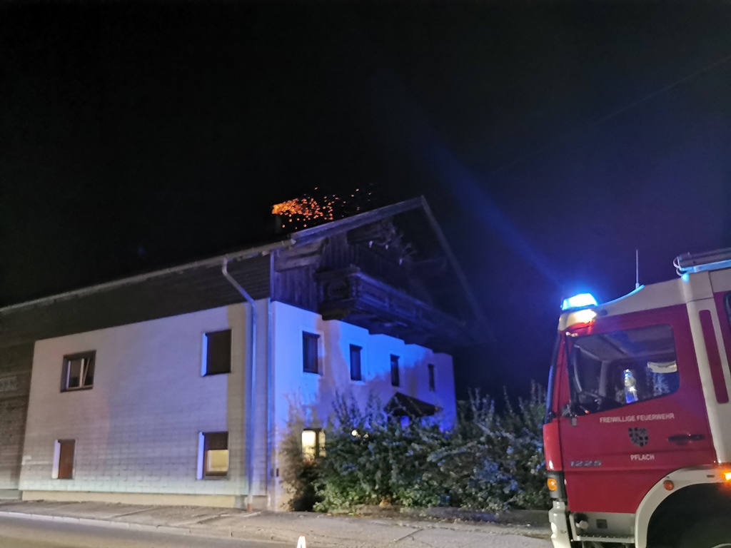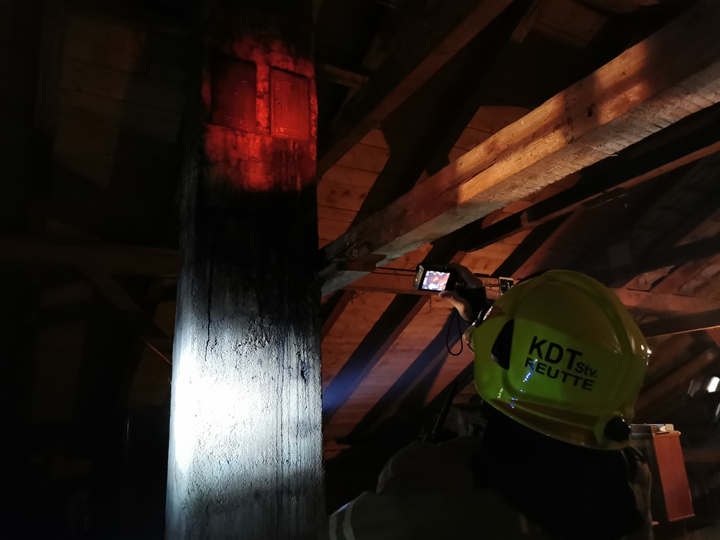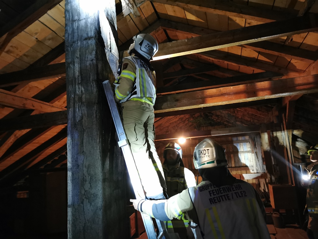 Bei Eintreffen am betroffenen Haus war deutlicher Funkenflug aus dem Kamin zu erkennen. Wir sicherten den Einsatzort ab und überwachten den Schornstein im Bereich des Dachbodens. Die ebenfalls alarmierte Feuerwehr Reutte kontrollierte mit einer Wärmekamera die Temperatur und überwachte mittels Drehleiter den Dachbereich. Nachdem der Kaminkehrer unter laufender weiterer Kontrolle der Temperatur die in Brand geratenen Ablagerungen entfernt hatte, konnten wir nach Beendigung der Aufräumarbeiten den Einsatz um ca. 23.15 Uhr beenden.