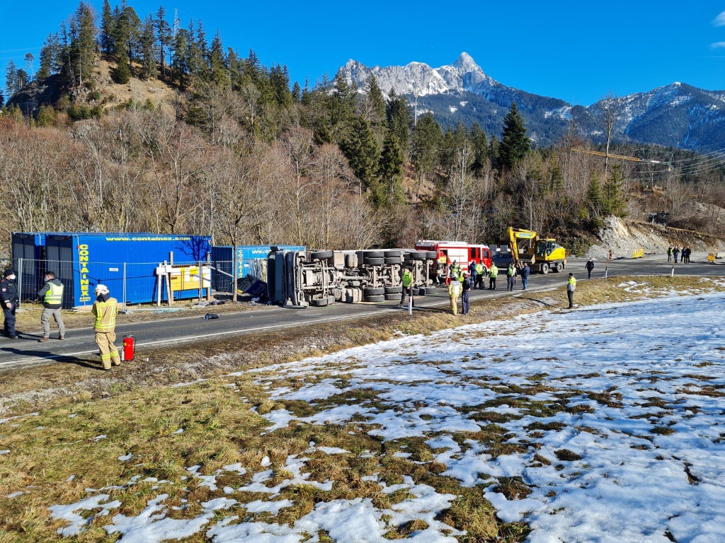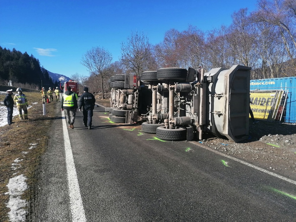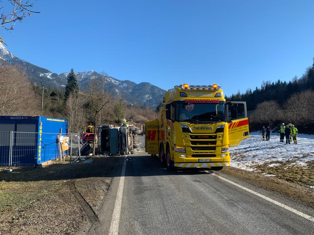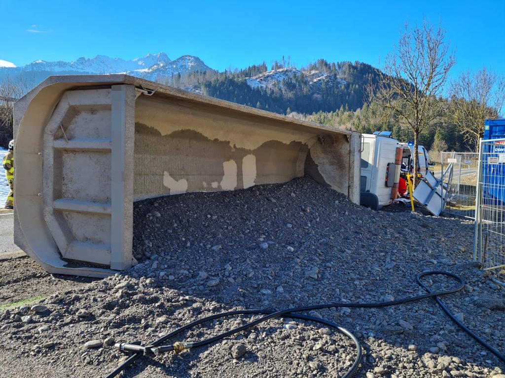 Kurz vor 12.00 Uhr kam es am 4. Februar auf der Auffahrt zur B179 zu einem Unfall, aus ungeklärter Ursache war ein mit Schotter beladener LKW umgekippt. Der bewusstlose Lenker wurde nach der Bergung aus dem Fahrzeug und der Erstversorgung vor Ort ins Krankenhaus gebracht. Der LKW wurde mit schwerem Gerät wieder aufgestellt und anschließend abgeschleppt.