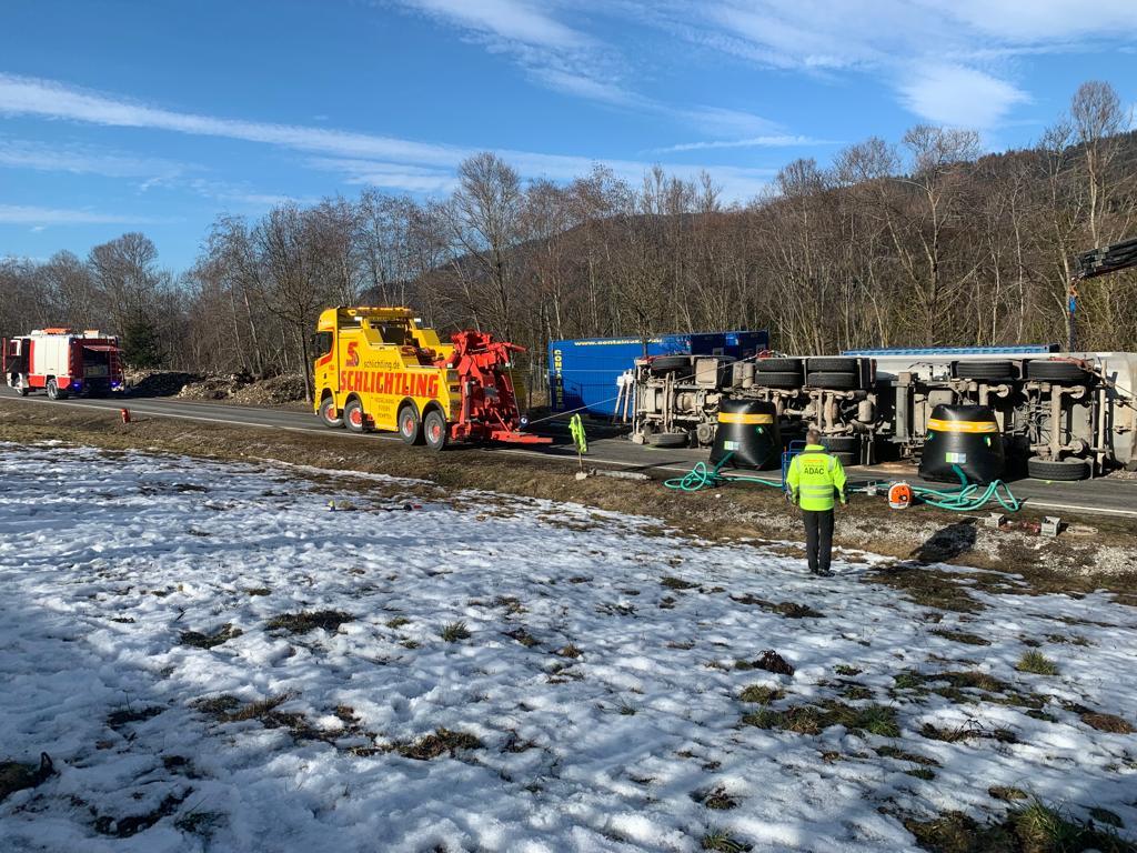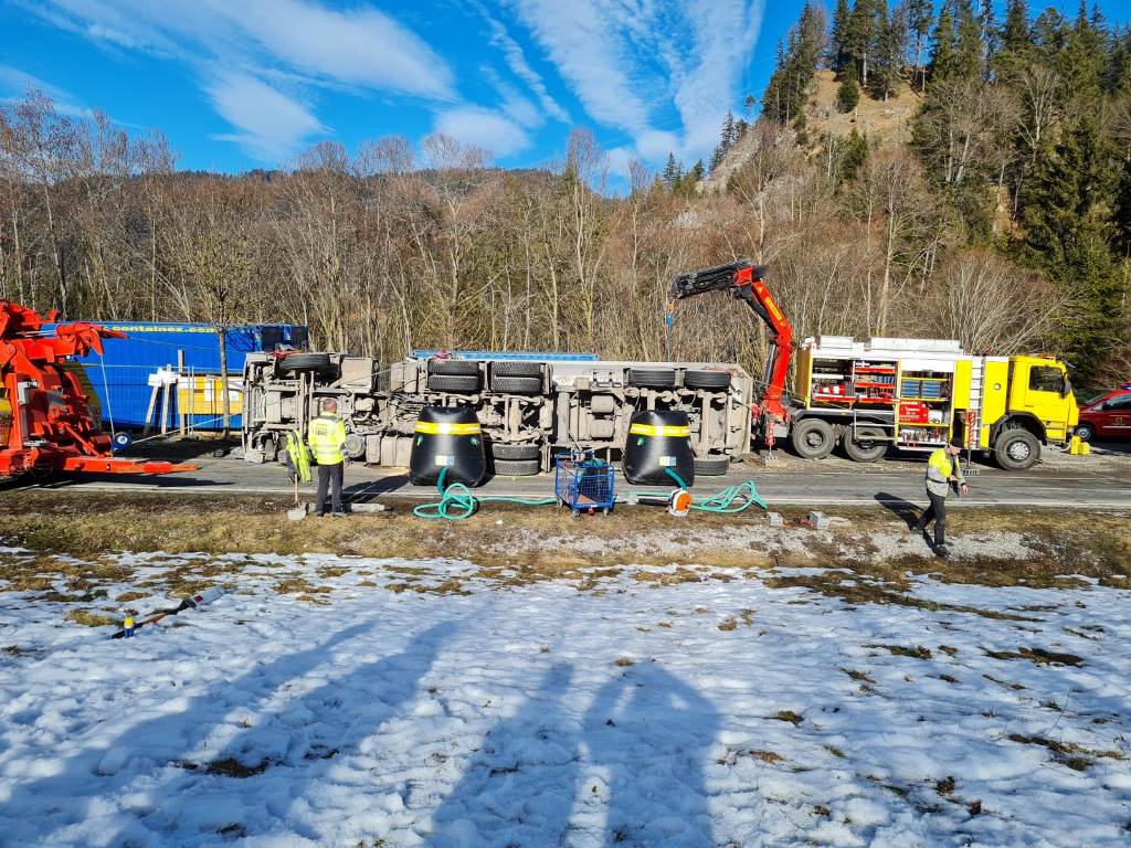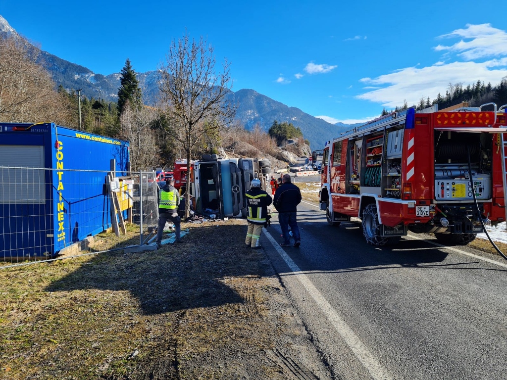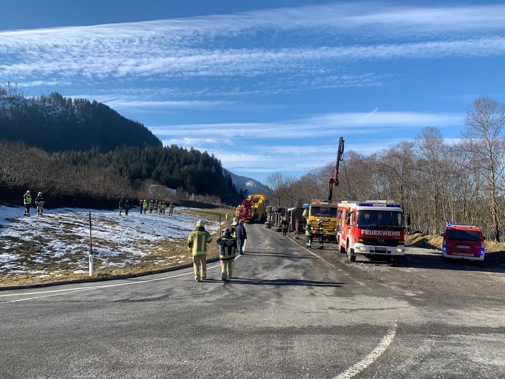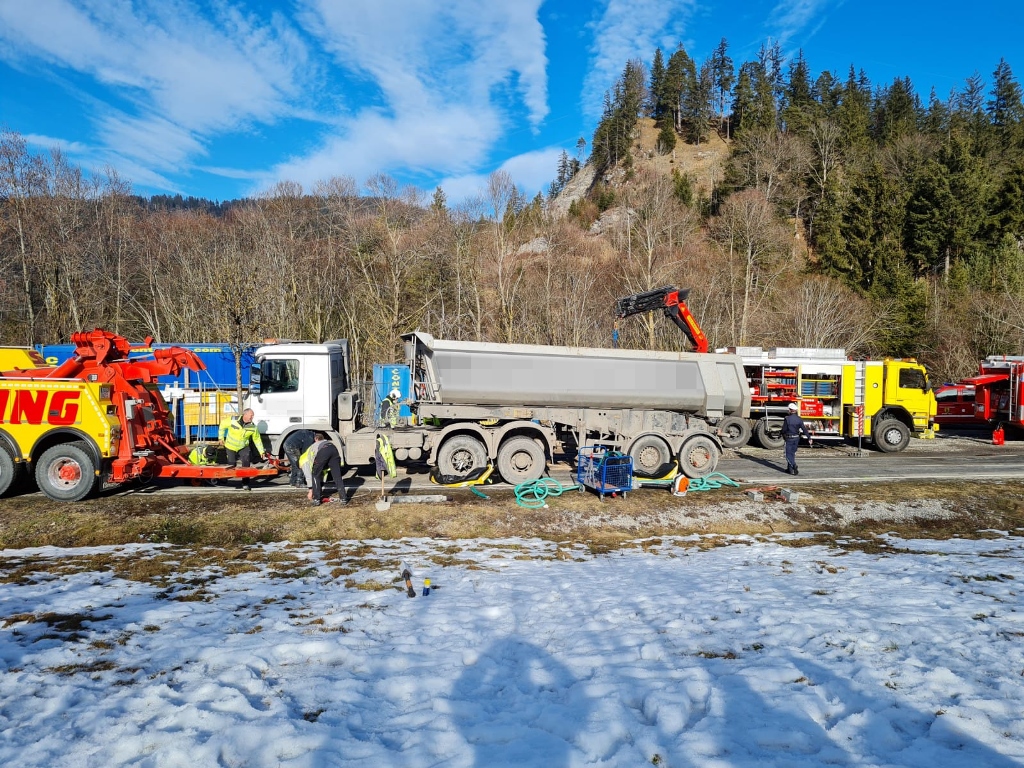 Kurz vor 12.00 Uhr kam es am 4. Februar auf der Auffahrt zur B179 zu einem Unfall, aus ungeklärter Ursache war ein mit Schotter beladener LKW umgekippt. Der bewusstlose Lenker wurde nach der Bergung aus dem Fahrzeug und der Erstversorgung vor Ort ins Krankenhaus gebracht. Der LKW wurde mit schwerem Gerät wieder aufgestellt und anschließend abgeschleppt.