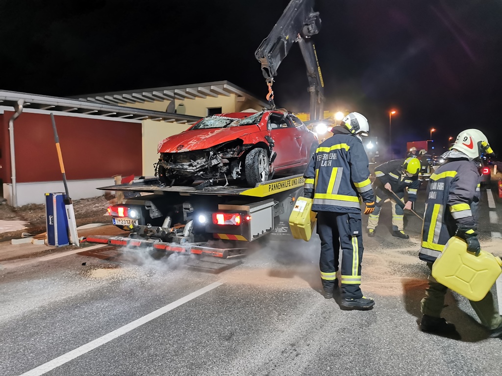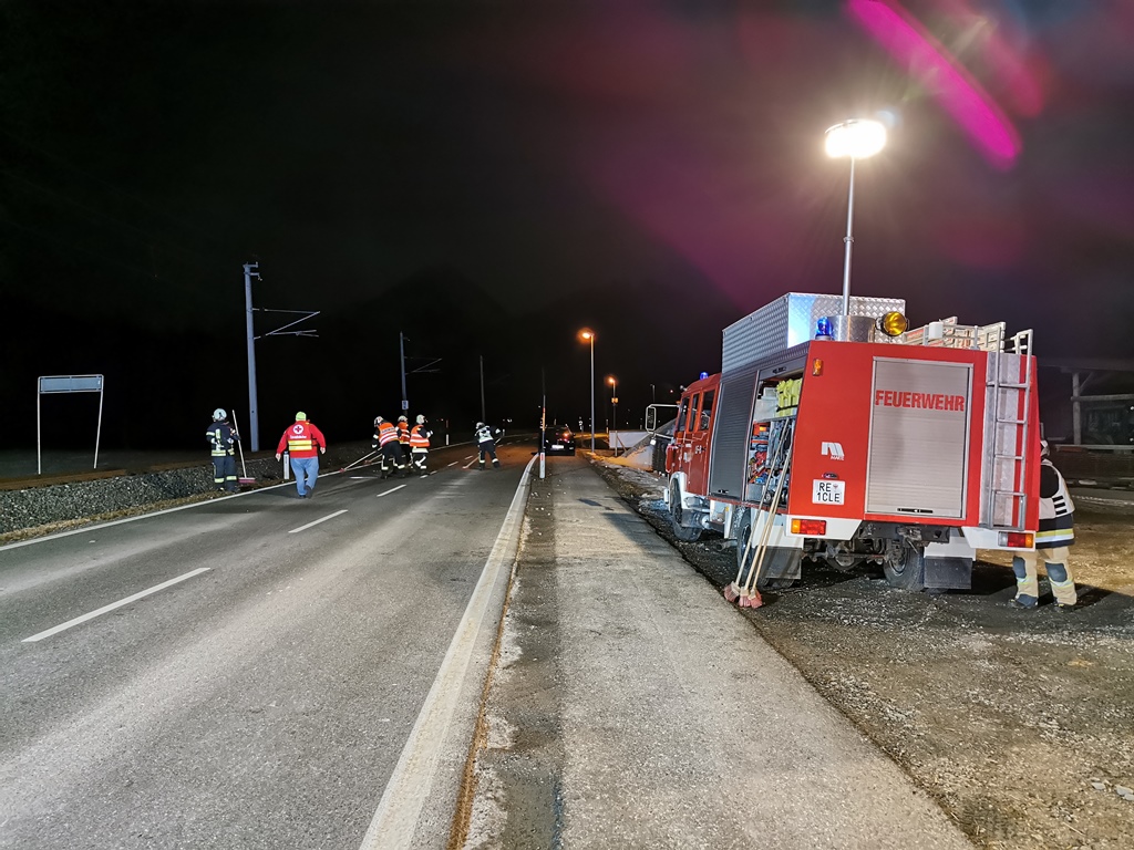 Wir rückten mit 17 Kräften und drei Fahrzeugen zum Unfallort aus, dort sicherten wir die Straße ab, bauten einen Brandschutz auf, banden die ausgetretenen Betriebsflüssigkeiten und führten die Aufräumarbeiten durch. Der verletzte Fahrer wurde von der Rettung in das Krankenhaus gebracht.