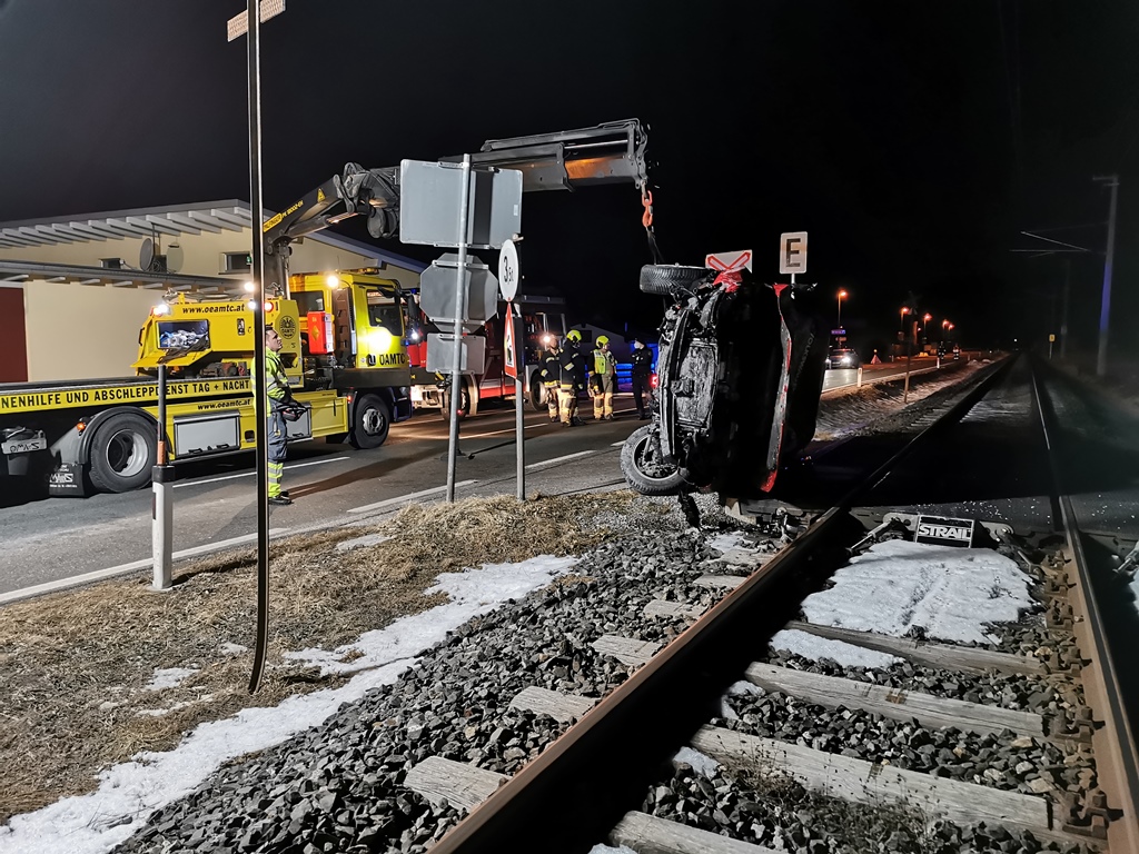 PKW auf Bahngleis, 15. Februar 2022