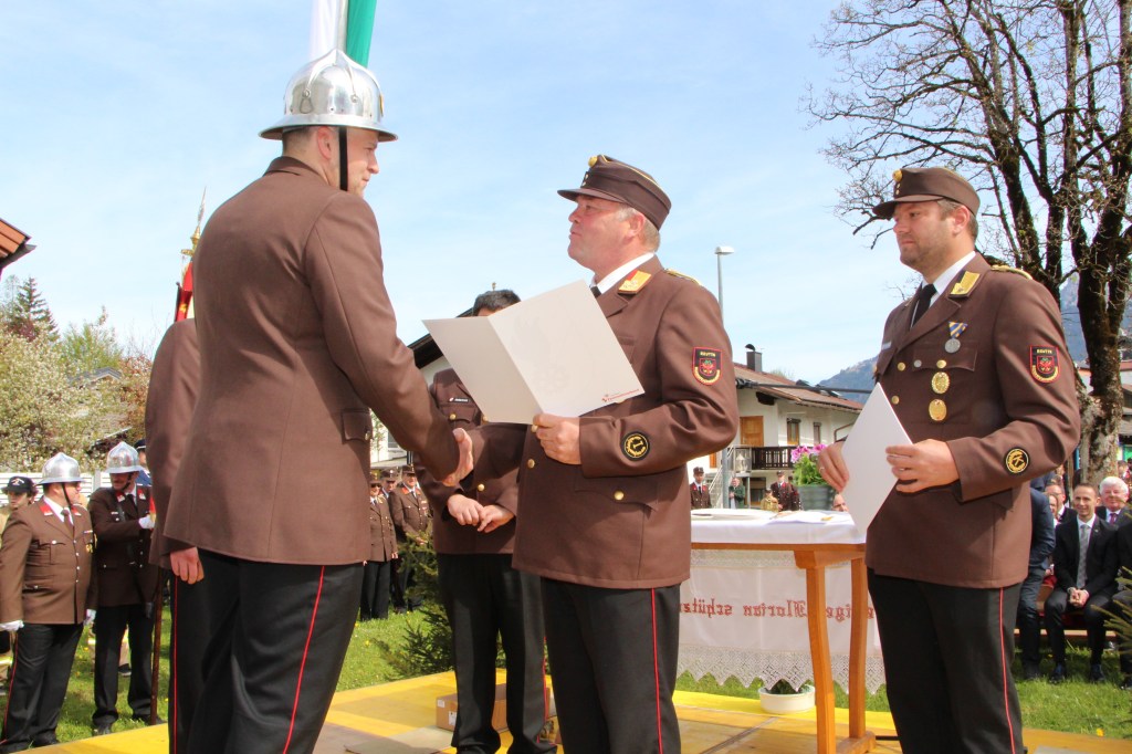 Aus unserer Wehr wurden Isabelle Ackermann, Madelaine Peer und Jonas Singer angelobt, unser Mitglied Sieghard Scheucher wurde für seine 40-jährige Tätigkeit als Feuerwehrmann ausgezeichnet. Kommandant Johannes Lenz wurde zum Oberbrandinspektor befördert, sein Stellvertreter Klaus Hans Singer zum Brandinspektor. Im Rahmen der anschließenden Feier im Gasthaus Schwanen wurden unser Kassier Michael Frewein und der Schriftführer Christian Tiefenbrunn zum Oberverwalter befördert.