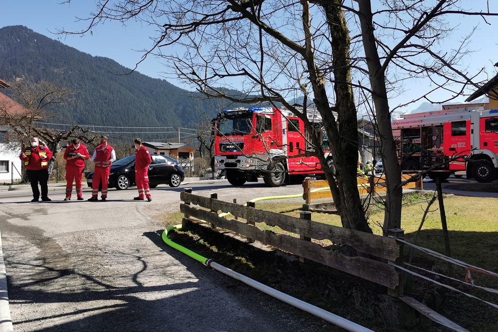 Wir waren mit 15 Kräften und zwei Fahrzeugen im Einsatz, die Feuerwehr Reutte mit 24 Kräften und vier Fahrzeugen, ebenso vor Ort waren Polizei und Rettung.
