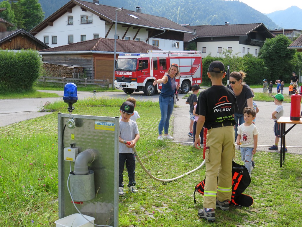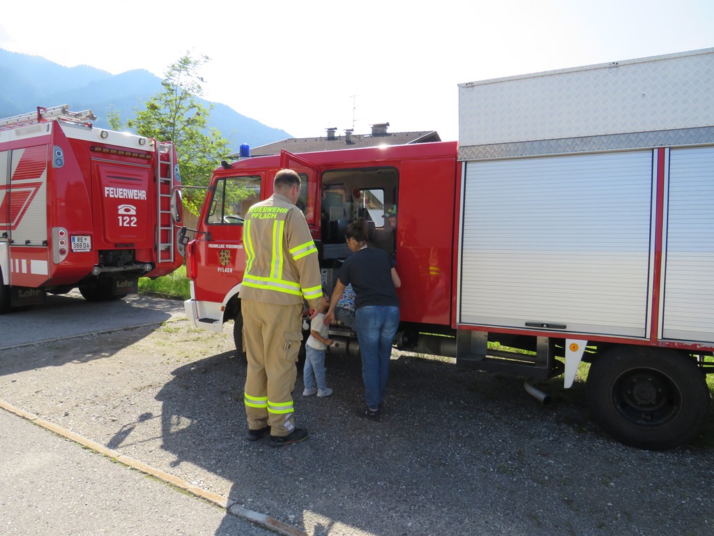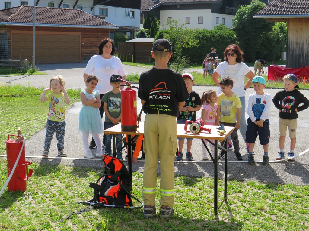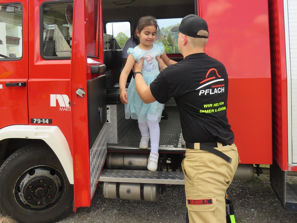Am 24. Juni durften wir beim alljährlichen Feuerwehrtag wieder die Kinder des Kindergartens und der Volksschule Pflach bei uns begrüßen. Unsere Jugendfeuerwehr hatte verschiedene Stationen vorbereitet, an denen die Ausrüstungsgegenstände und die Einsatzbekleidung bestaunt werden konnten. Ein Highlight war, wie immer, die Fahrt mit dem Feuerwehrauto! Außerdem wurde vorgeführt, wie und warum sich ein Feuerwehrmann in einen Atemschutzgeräteträger verwandelt.