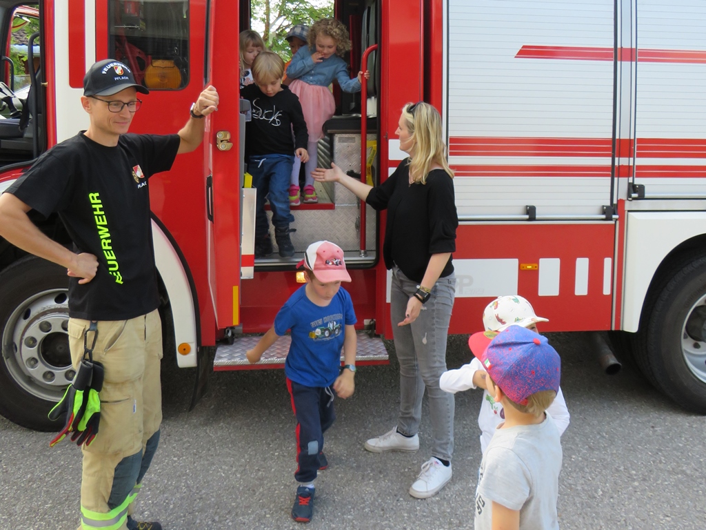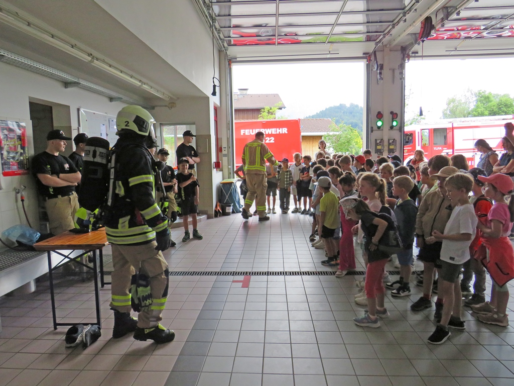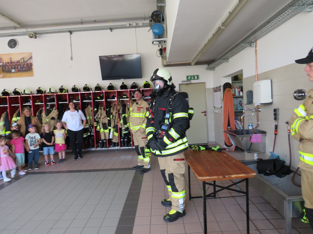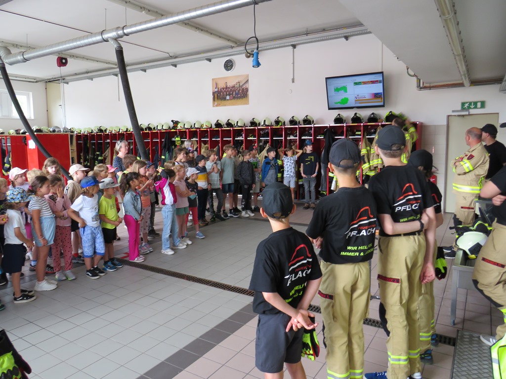 Am 24. Juni durften wir beim alljährlichen Feuerwehrtag wieder die Kinder des Kindergartens und der Volksschule Pflach bei uns begrüßen. Unsere Jugendfeuerwehr hatte verschiedene Stationen vorbereitet, an denen die Ausrüstungsgegenstände und die Einsatzbekleidung bestaunt werden konnten. Ein Highlight war, wie immer, die Fahrt mit dem Feuerwehrauto! Außerdem wurde vorgeführt, wie und warum sich ein Feuerwehrmann in einen Atemschutzgeräteträger verwandelt.