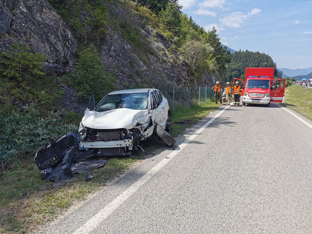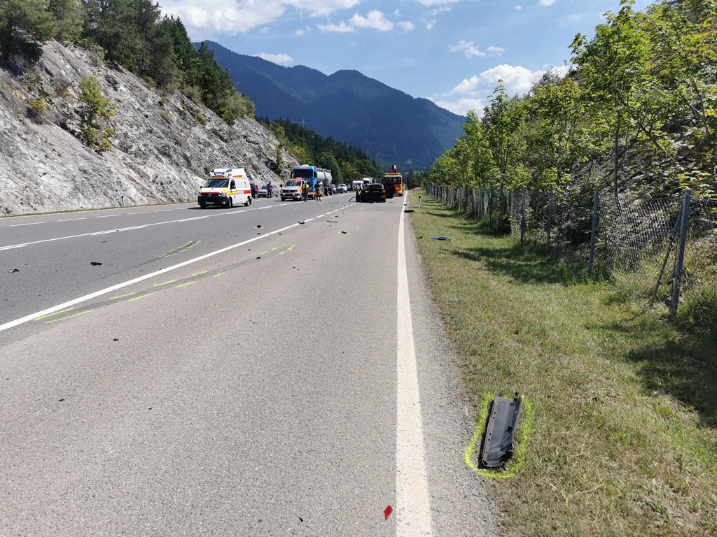 Am 12. August wurden wir am frühen Nachmittag zu einem Unfall auf der B179 gerufen. Gegen 12.30 Uhr war eine Belgierin in ihrem Pkw auf der Fernpaßstraße in Richtung Norden unterwegs. Sie kam auf die Gegenfahrbahn und stieß dort mit dem Auto eines Niederländers zusammen. Bei dem Unfall wurden acht Personen, darunter vier Kinder, verletzt, sie wurden in die Krankenhäuser Reutte und Füssen gebracht. Für die Dauer der umfangreichen Aufräumarbeiten musste die Straße gesperrt werden.