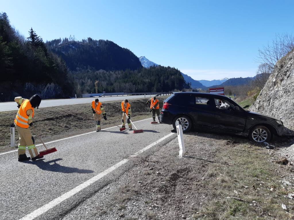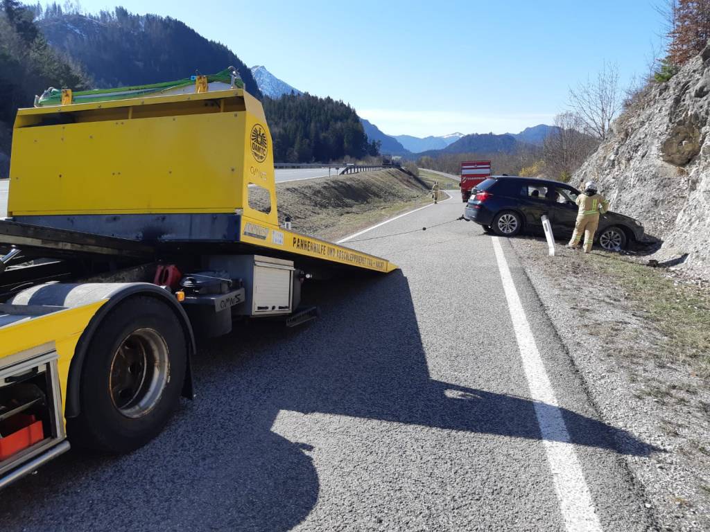 Am 30. März kam gegen 15:15 Uhr ein einheimischer Lenker auf der B179 bei der Ausfahrt Reutte Nord aus bislang unbekannter Ursache von der Fahrbahn ab und prallte seitlich gegen die Felswand. Die beiden Insassen wurden leicht verletzt ins Krankenhaus gebracht, das Auto mit erheblichem Sachschaden vom ÖAMTC abgeschleppt. Wir waren mit 14 Mann und 3 Fahrzeugen im Einsatz.