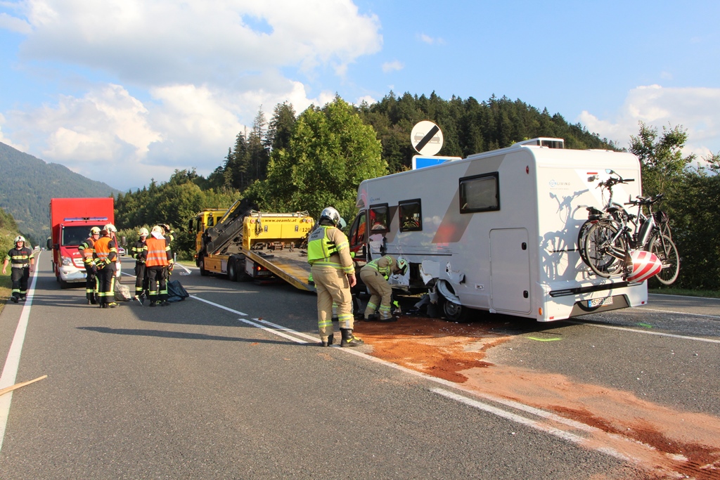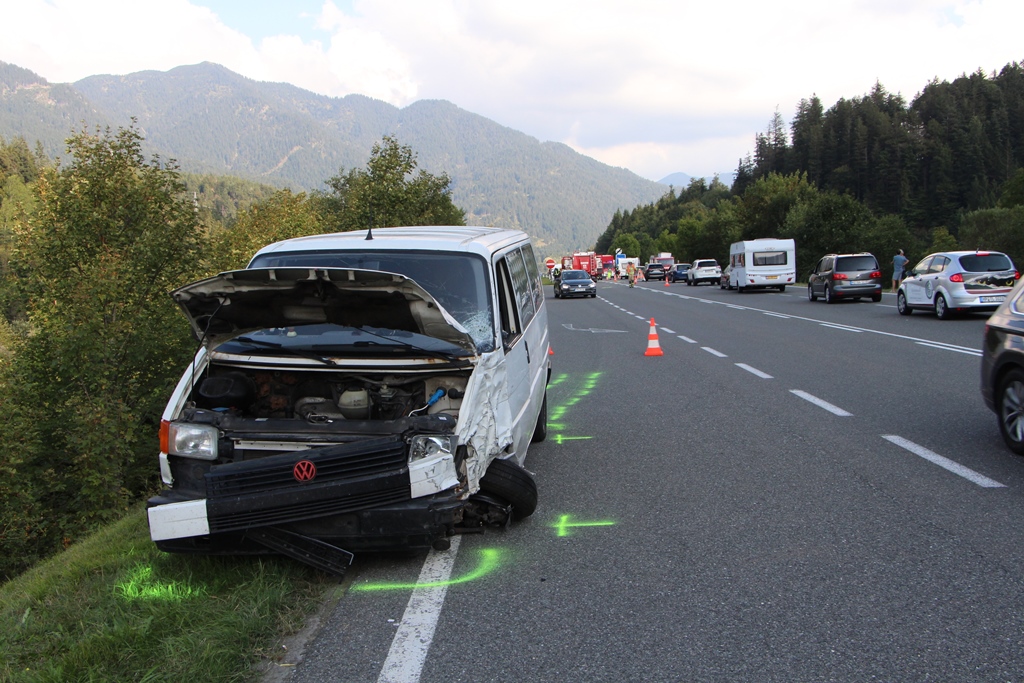 Ein in Richtung Deutschland fahrender VW-Bus kam auf die Gegenfahrbahn und stieß in weiterer Folge mit einem PKW und einem Wohnmobil zusammen.